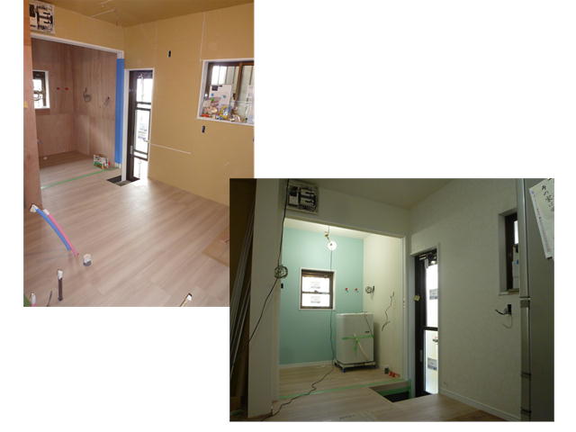 少し作業がすすみますが、壁の下地もでき、クロスも貼り終えた状態です。ここまでできると、引き渡しまで、もう少しといったところです。まだ、据え付けの家具も製作するのですが、家具製作はつぎの作業風景で紹介したいと思います。